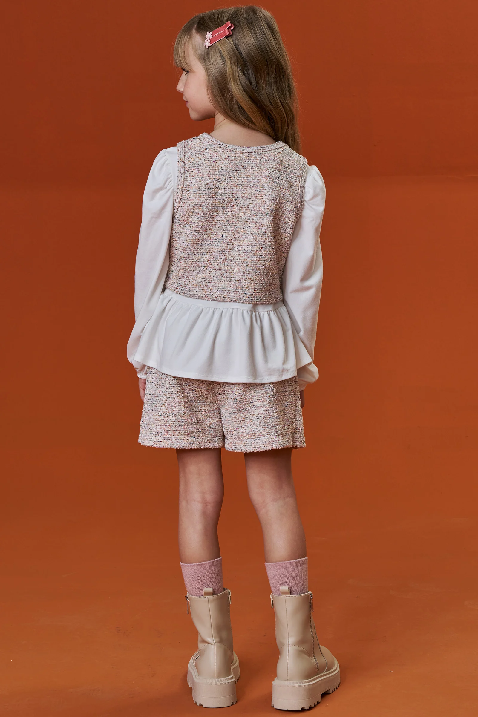 BLUSA ML E SHORT SAIA E COLETE BEGE