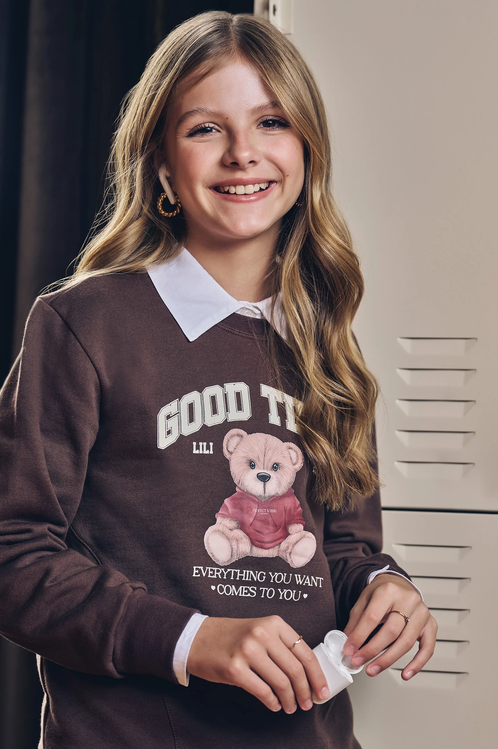 BLUSAO OVER EM MOLETOM COM PELUCIA MARROM